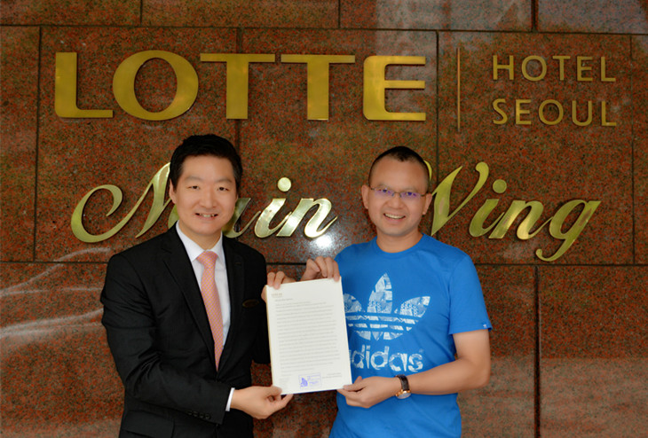 7月20日,海誉董事长周静源送还138万韩元 获乐天大酒店宋总感谢信。